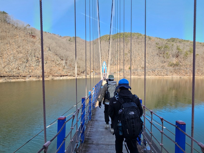 출렁다리 주차장(무료)에 주차 후 출렁다리를 건너간다. 출렁다리 건너기전에 화장실이 있으니 산행 시작하기전에 미리다녀오는 걸 추천…그 이후에는 화장실이 없다.