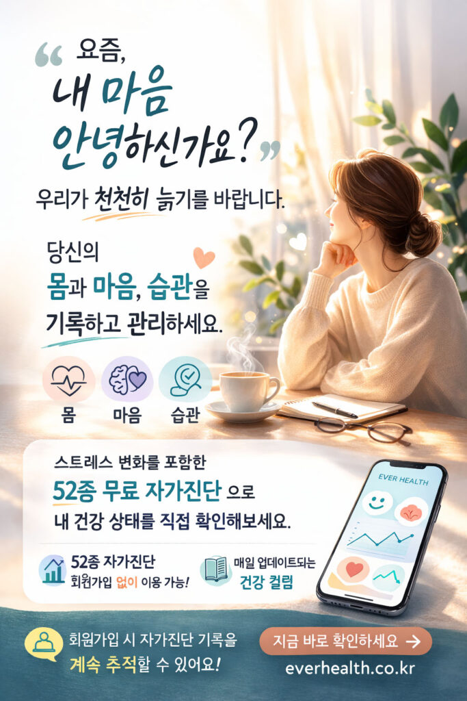 [에버헬스] 스트레스, 인슐린저항성, 번아웃, 우울증, 탄수화물 중독, 노화 속도 등 52종의 무료 건강 자가진단 이용가능( https://everhealth.co.kr)